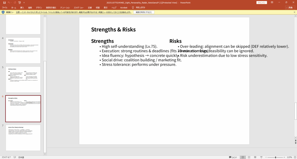 将来的には「字数バジェット+自動分割」のより厳しめテンプレをあなた用に1本作っておくのが最強。以降は中身を差し替えるだけで“はみ出さない”スライドが量産できます。
